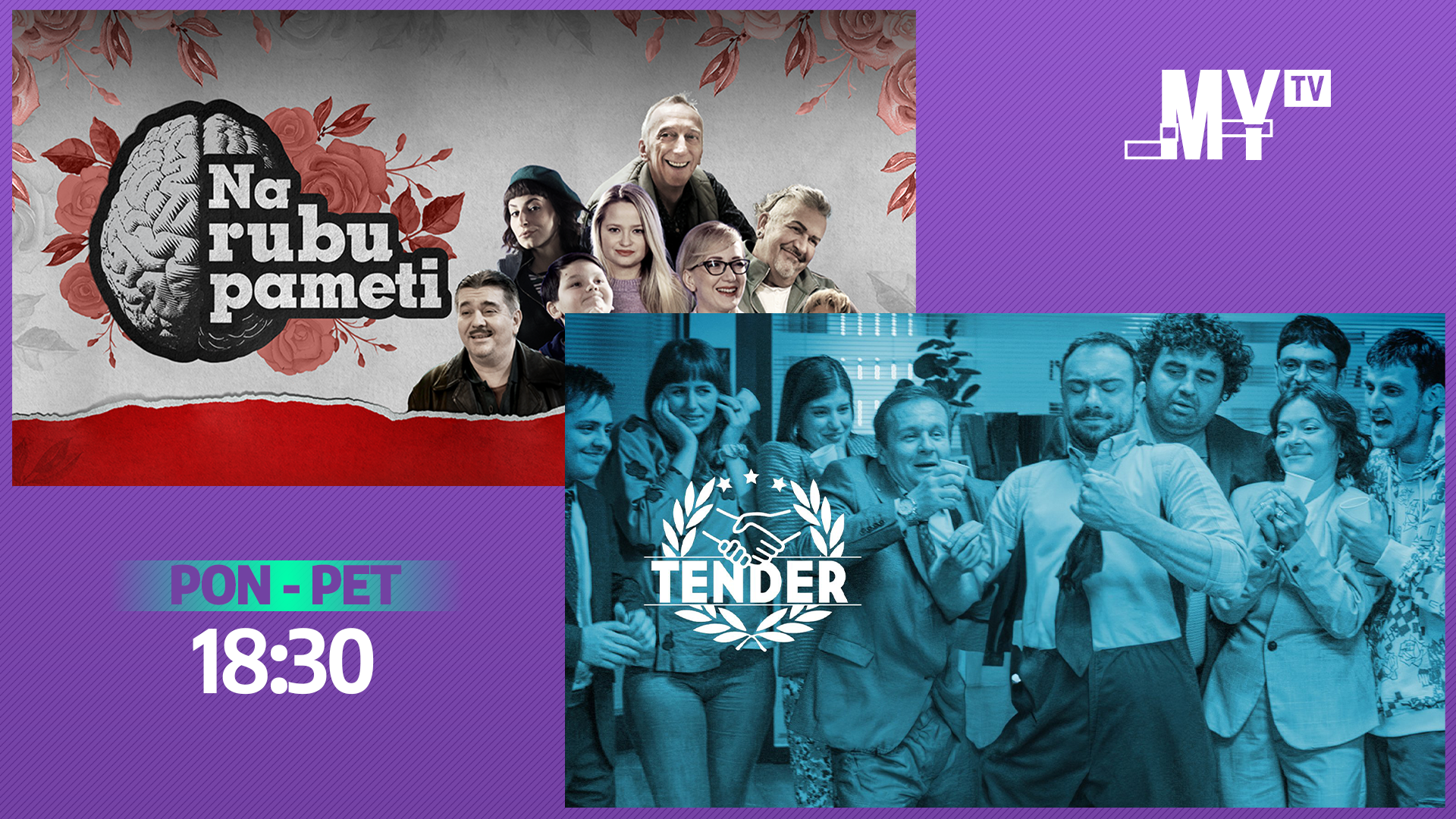 Od petka, 19. septembra, MYTV vraća na male ekrane dvije serije koje su davno osvojile publiku, „Na rubu pameti“ i „Tender“. Gledatelji će svakog radnog dana u 18:30 sati imati priliku ponovo proživljavati priče koje su ih nasmijavale, dirale i ostavljale bez daha.